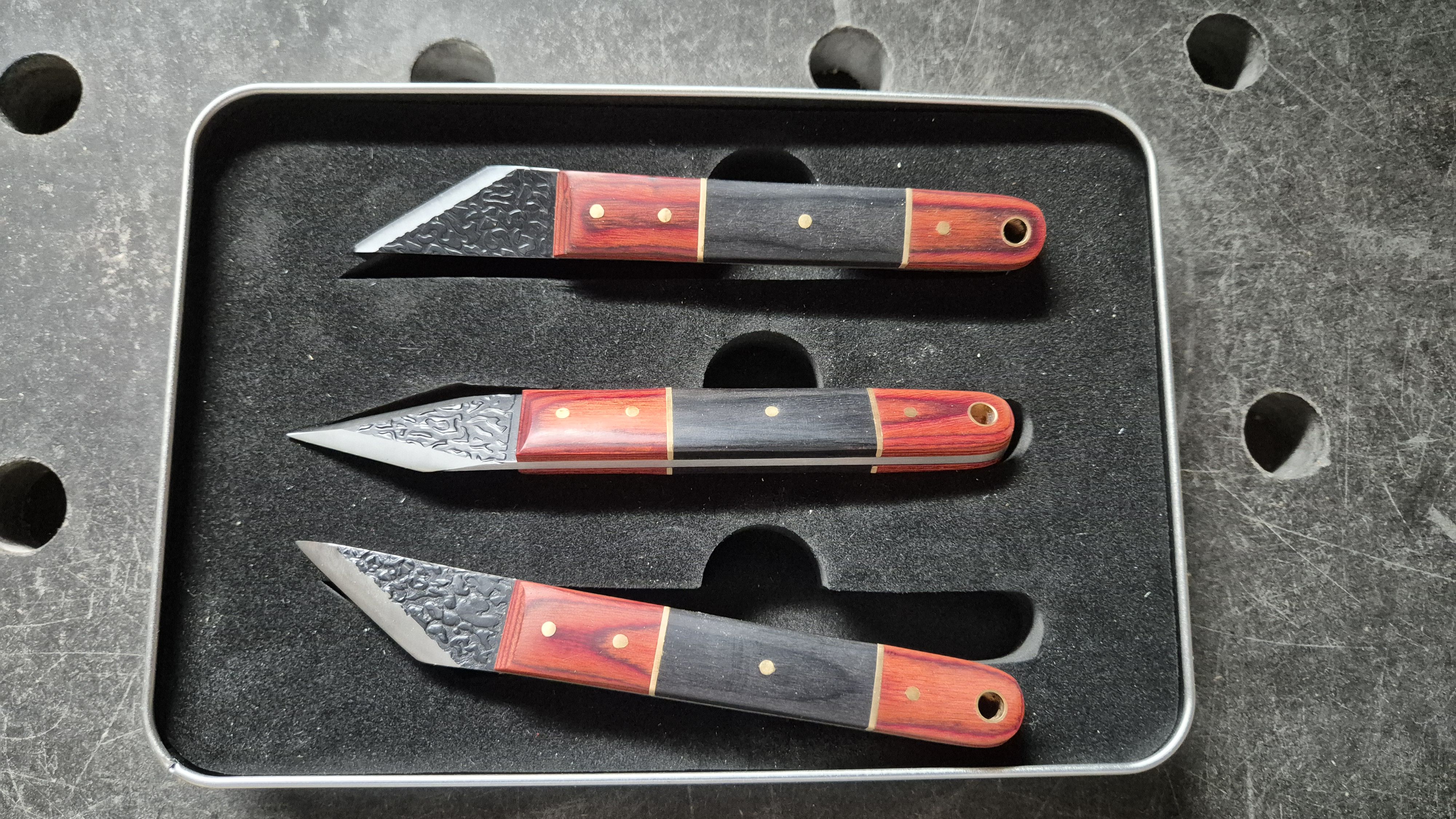 The marking tools are composed of japanese marking knife, V-point marking knives, micrometric marking gauge, dovetail markers, different types of pencils and a center pucnh.
